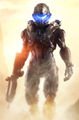 The primary protagonist of the Halo series, SPARTAN-II supersoldier Master Chief Petty Officer John-117, returns in Halo 5: Guardians following the end of Halo 4. It has been noted that John has begun to question all of his former beliefs[8] and has disappeared[15] following events further detailed in "The Next 72 Hours", a story arc of the comic series Halo: Escalation.[16] In media released so far, the Master Chief's modified Mark VI MJOLNIR armor is seemingly unchanged from Halo 4. In the initial teaser trailer, the Master Chief is shown wearing a hooded cloak with his armor having suffered considerable damage. He is seen in the possession of an empty data crystal chip on a chain, alluding to his loss of Cortana at the end of Halo 4.[17]