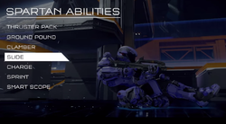 In Halo 5: Guardians, armor abilities are replaced by a new set of gameplay enhancements known as Spartan abilities,[29] which are available to all players at any time. There is an increased focus on player mobility; players can now use the thruster pack (which allows omnidirectional movement) at all times, vault ledges, rapidly dash for cover or charge an enemy, or generate a shockwave by striking the ground. The sprint function is still present but the player's shields do not recharge while sprinting. Additionally, the charge and slide abilities are executed as sprint reaches terminal velocity. A new feature called the "smart scope" allows players to aim down the weapon's sights in a manner similar to many other modern shooters, although with non-scope weapons this is purely a cosmetic effect and provides little to no actual accuracy enhancement; 343 Industries will use the Multiplayer Beta to gauge the effects of this feature on the game's gameplay balance.[30] The heads-up display once again allows the player to see what other weapon they have but are not currently using, a feature that had been removed in Halo 4. Additionally, Halo 5: Guardians will support up to two players on splitscreen.[31]