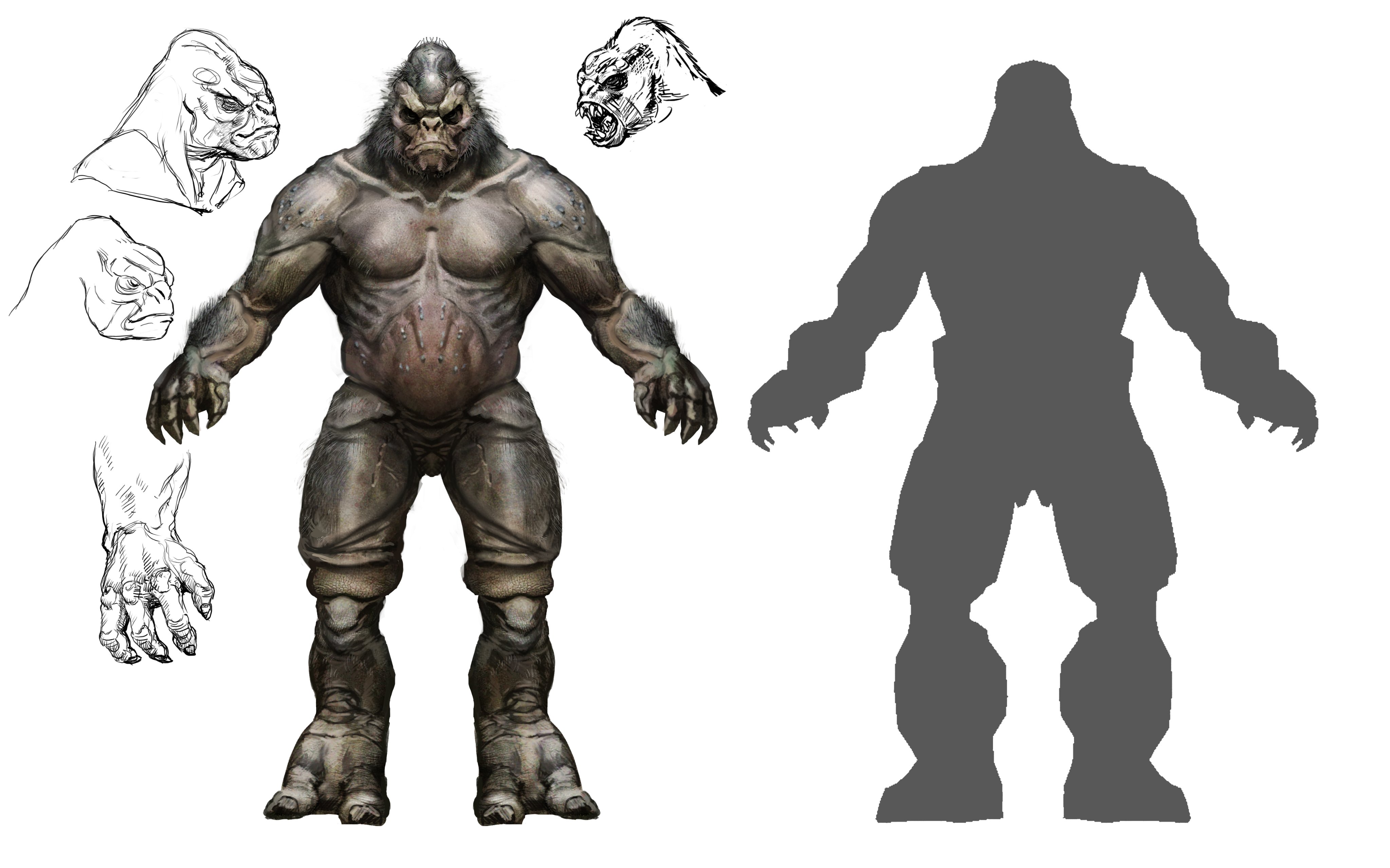 Simioid physiology; thick, shaggy fur; prominent fangs |