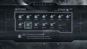 Career Milestones were Halo Waypoint's overall measure of participation and performance across all Halo games released from September 2007 through 2014. Career Milestones were removed from the web version of Waypoint on October 13, 2014, and replaced by a simple Gamerscore total (which itself was discontined in 2021). They were still visible on the Xbox 360 version until it was shut down on January 13, 2022.