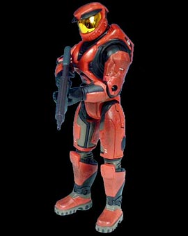 This file is an image of an action figure from the Halo series of video games developed by Bungie Studios, 343 Industries, or Ensemble Studios and published by Microsoft. It falls under the screenshot category for a copyrighted computer game or video game, and the copyright for it is most likely held by the company that developed the game. It is believed that the use of a limited number of web-resolution screenshots: