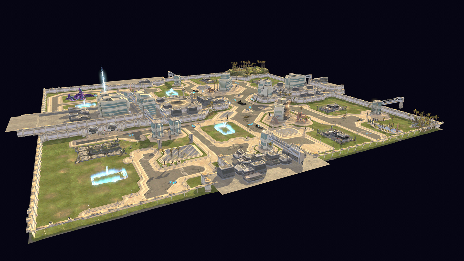 The Layout of the Halo Wars Multiplayer Level "The Docks" from a side view.