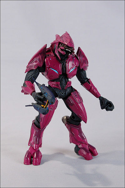 This file is an image of an action figure from the Halo series of video games developed by Bungie Studios, 343 Industries, or Ensemble Studios and published by Microsoft. It falls under the screenshot category for a copyrighted computer game or video game, and the copyright for it is most likely held by the company that developed the game. It is believed that the use of a limited number of web-resolution screenshots: