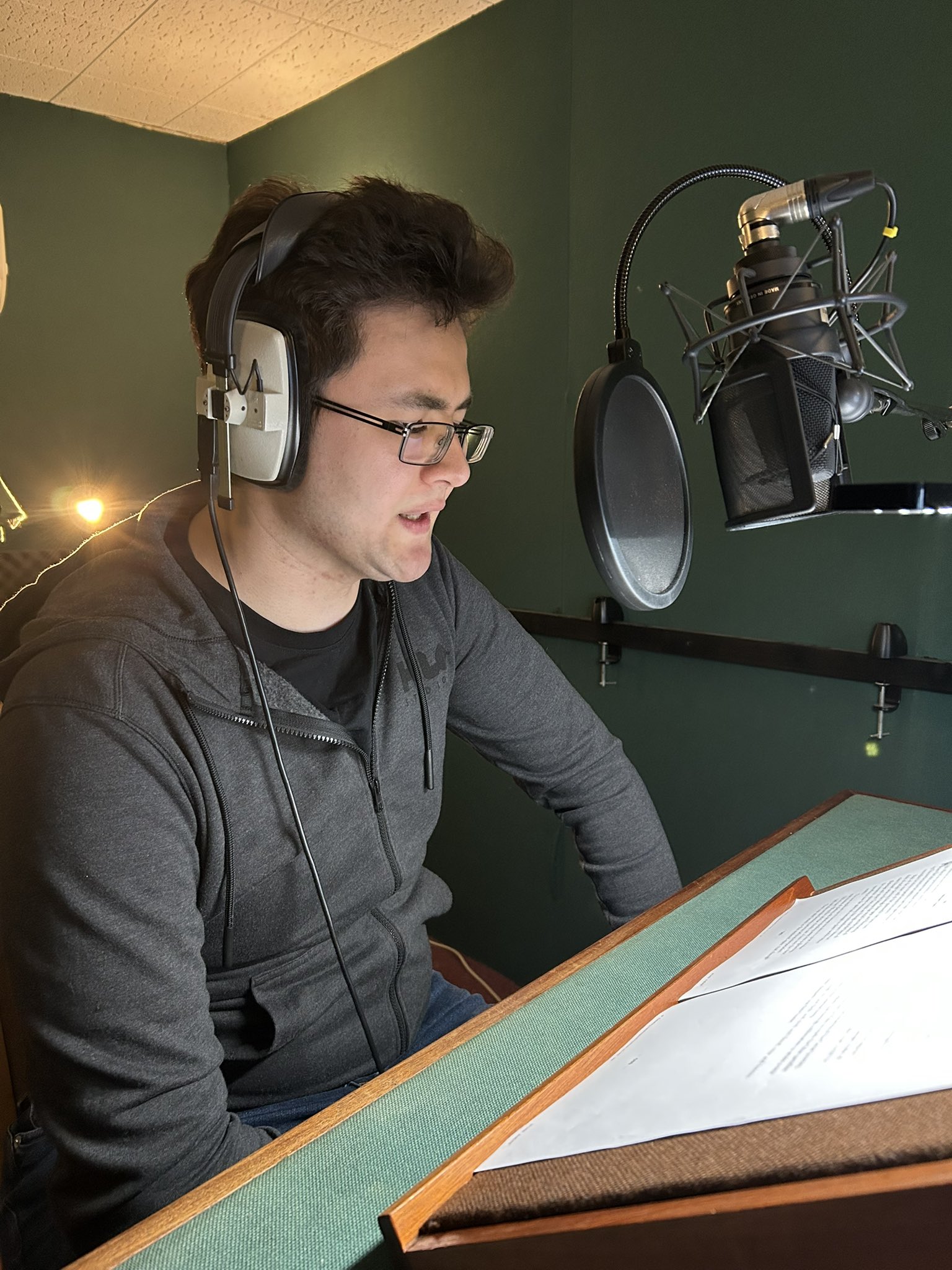 | Summary | A photo of Alex Wakeford recording the audio narration for Halo: Graveworld. |