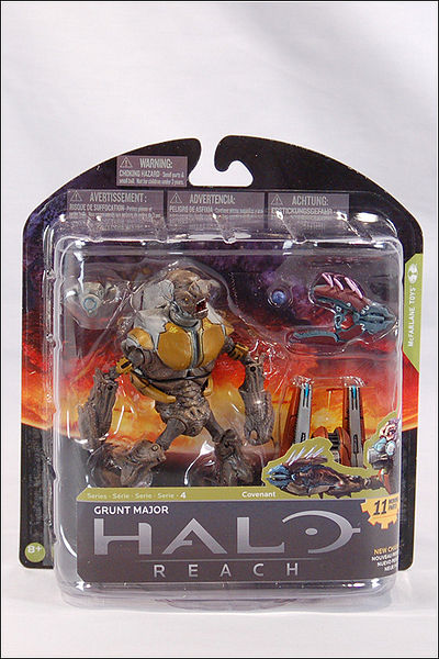This file is an image of an action figure from the Halo series of video games developed by Bungie Studios, 343 Industries, or Ensemble Studios and published by Microsoft. It falls under the screenshot category for a copyrighted computer game or video game, and the copyright for it is most likely held by the company that developed the game. It is believed that the use of a limited number of web-resolution screenshots: