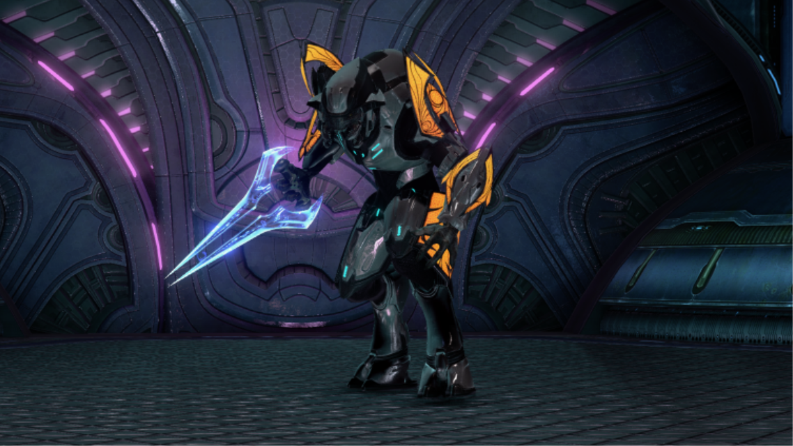 This image is a screenshot of a character or AI unit from the Halo series of first-person shooter video games developed by Bungie Studios or 343 Industries and published by Microsoft. It falls under the screenshot category for a copyrighted computer game or video game, and the copyright for it is most likely held by the company that developed the game. It is believed that the use of a limited number of web-resolution screenshots:
