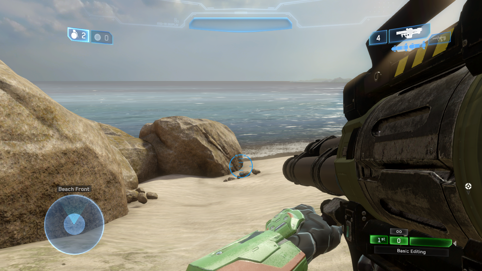 This image is a screenshot of a weapon from the Halo series of first-person shooter video games developed by Bungie Studios or 343 Industries and published by Microsoft. It falls under the screenshot category for a copyrighted computer game or video game, and the copyright for it is most likely held by the company that developed the game. It is believed that the use of a limited number of web-resolution screenshots: