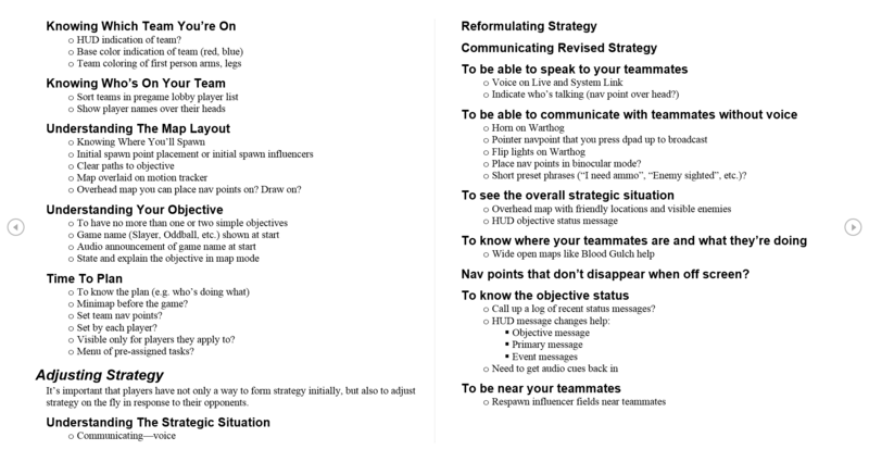 | Summary | Multiplayer design documentation for Halo 2. I've been sharing tidbits from my original Halo 2 multiplayer, UI, and online specs, but here's a real treat: an entire design doc. I wasn't initially in charge of the larger scale mp game, so I had to play catch-up. This was my plan.