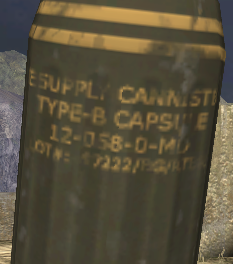 | Summary | A closeup screenshot of a Type-B Resupply Capsule's label on the level Regret. |