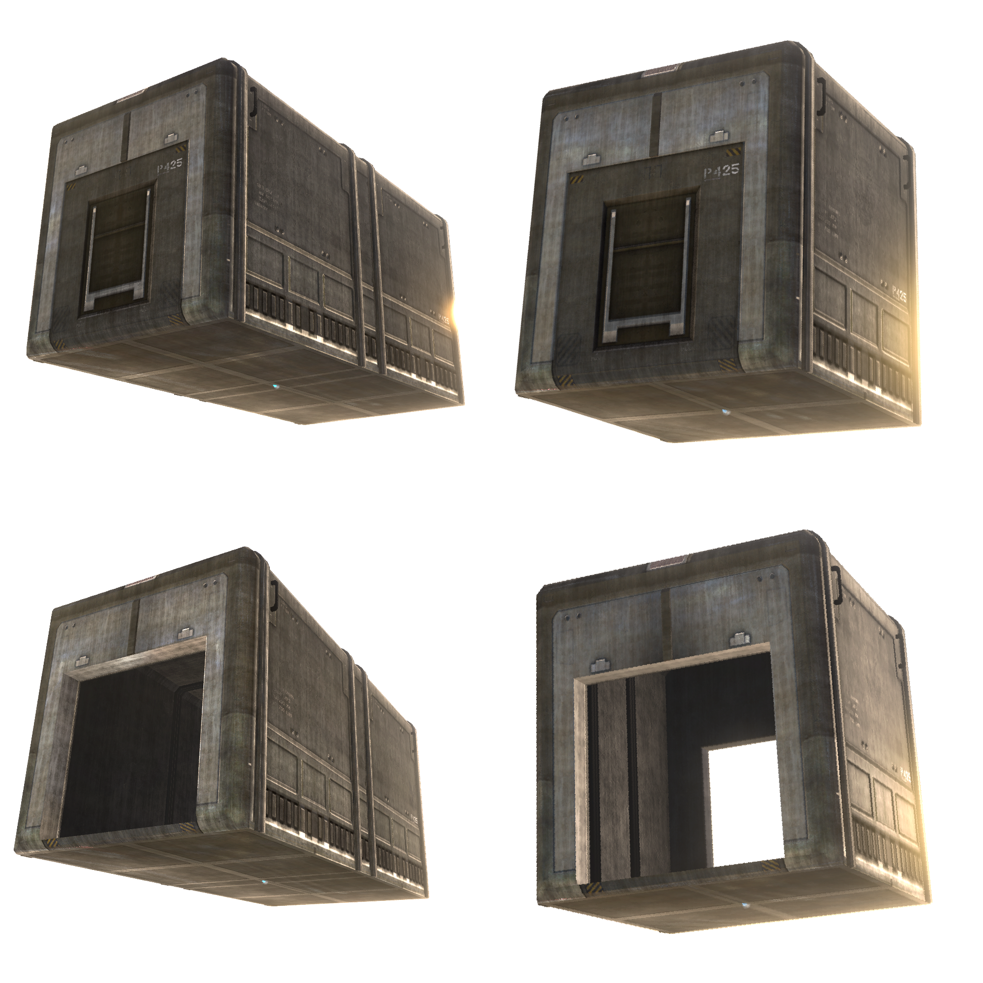 All four types of boxes seen on the Halo 3 multiplayer map Foundry.