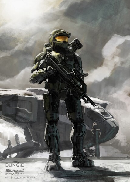| Summary | Concept sketch of John-117 for the Halo 3 manual cover art. |