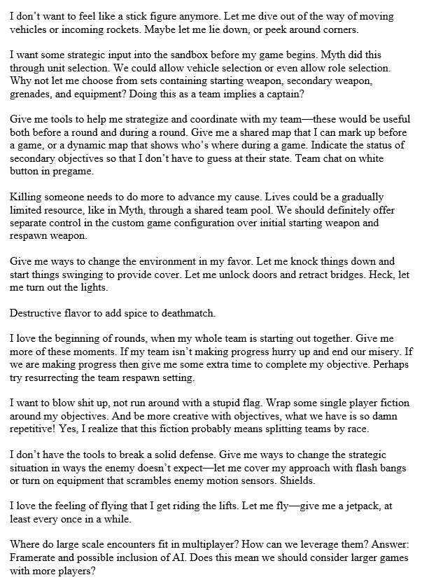 | Summary | Max Hobeman's initial thoughts for Halo 3 MP. Since #Halo3 is trending, here are some miscellaneous (and a little absurd) thoughts on multiplayer that I jotted down at the very start of development.