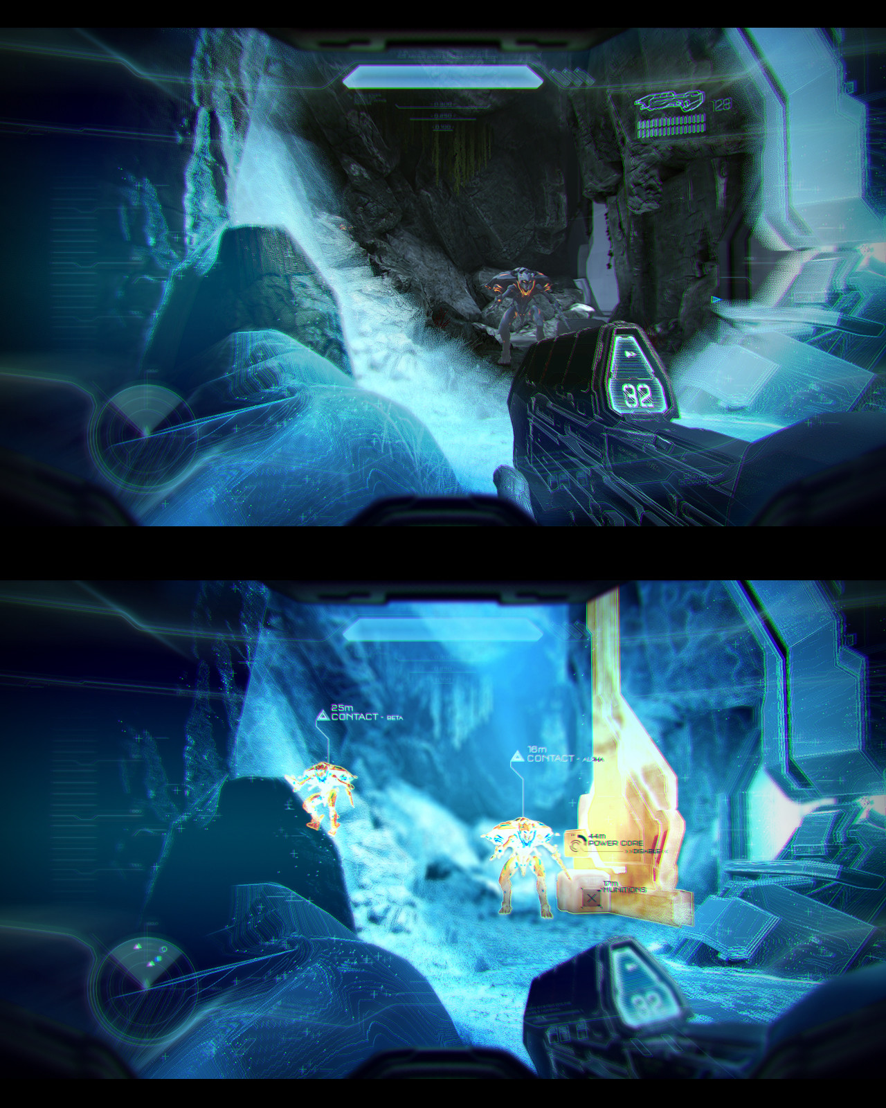 | Source caption | A very early Halo 4 exploration in to Various scanning abilities that a Spartan's Visor / HUD might have. |