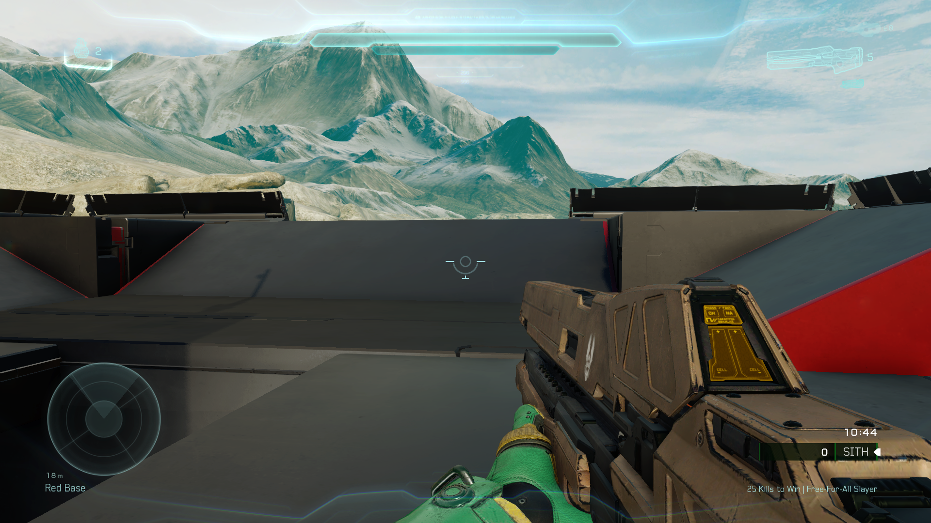 This image is a screenshot of a weapon from the Halo series of first-person shooter video games developed by Bungie Studios or 343 Industries and published by Microsoft. It falls under the screenshot category for a copyrighted computer game or video game, and the copyright for it is most likely held by the company that developed the game. It is believed that the use of a limited number of web-resolution screenshots: