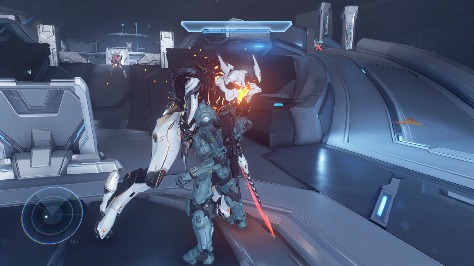 Frederic-104 assassinating a Promethean Knight Commander in the Halo 5: Guardians campaign level The Breaking.