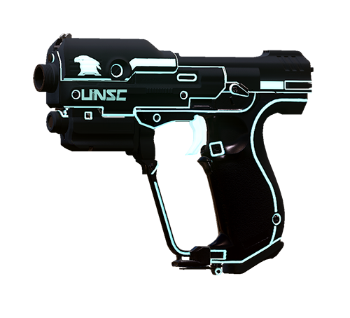 This image is a screenshot of a weapon from the Halo series of first-person shooter video games developed by Bungie Studios or 343 Industries and published by Microsoft. It falls under the screenshot category for a copyrighted computer game or video game, and the copyright for it is most likely held by the company that developed the game. It is believed that the use of a limited number of web-resolution screenshots: