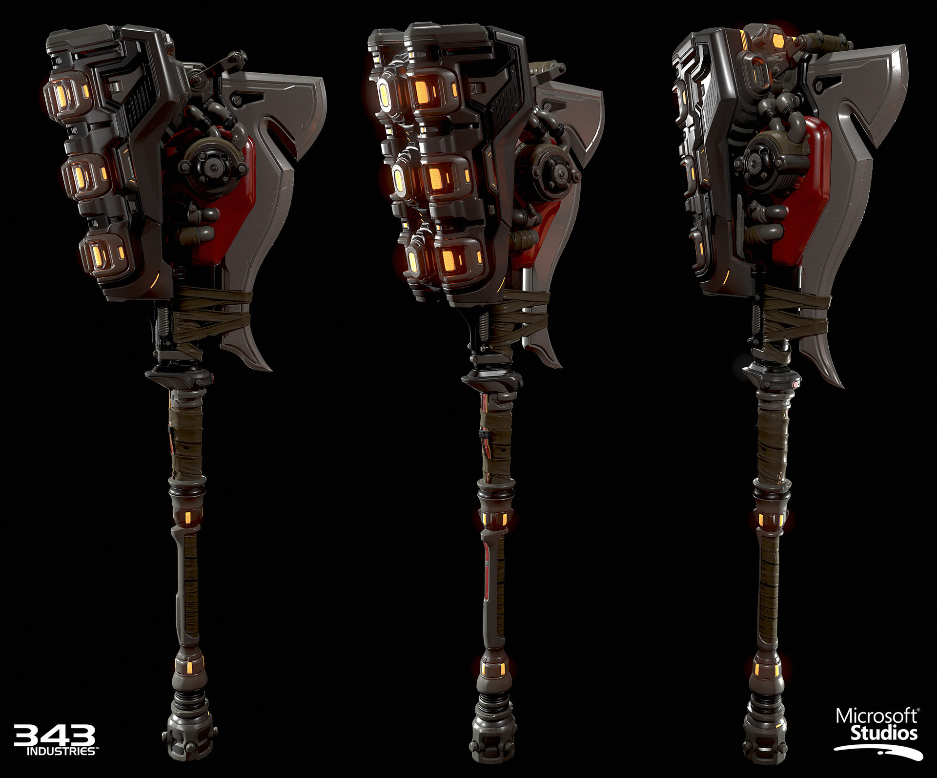 | Source caption | This is the Gravity Hammer I made for Halo 5: Guardians in 2015. This weapon is a redesign of Bungie's Halo: Reach gravity hammer. Everything on the model was built from scratch, but I kept a lot of the legacy design intact. I was responsible for the revised concept, hipoly, lowpoly, UVs & bakes. Andrew Bradbury did the textures/materials. |