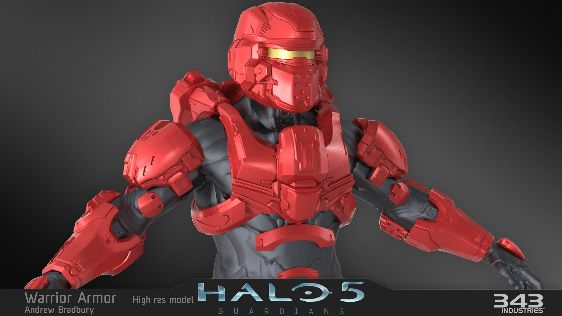| Source caption | This is the Warrior armor, originally created way back at the start of Halo 4. It was the first multiplayer armor created on the project, and my first real modelling task at 343. It was updated for Halo 5 by Mark Von Borstel. |