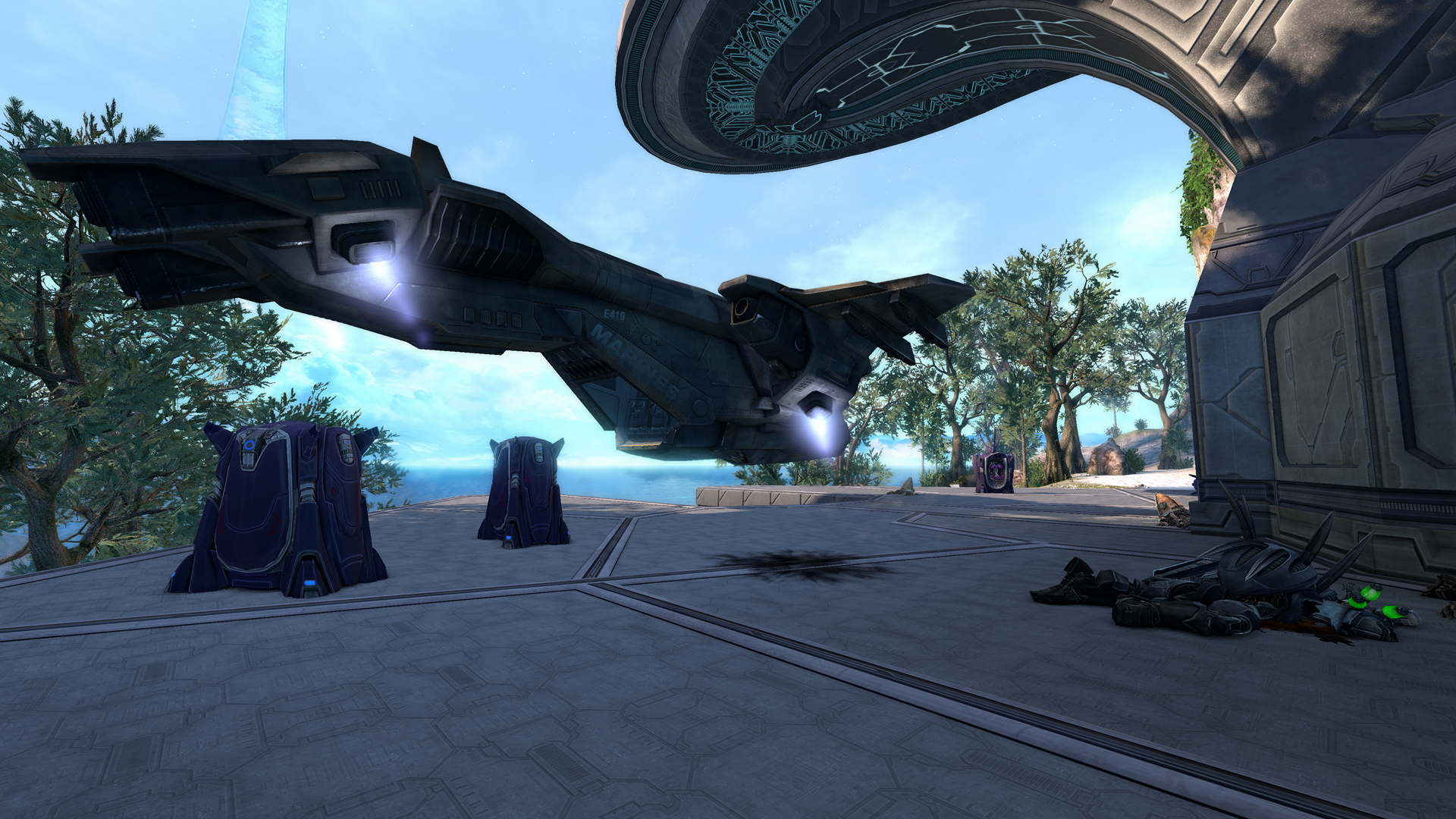 | Summary | Pelican Echo 419 arriving at the Cartographer facility to extract John-117 following his successful mission. From Halo: Combat Evolved Anniversary campaign level The Silent Cartographer. |