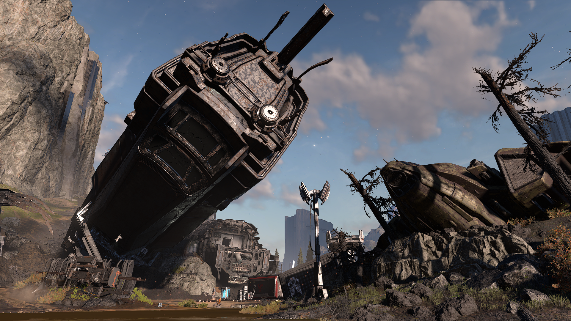 | Summary | The bow of a crashed Mulsanne-class light frigate. From Halo Infinite campaign level Pelican Down. |
