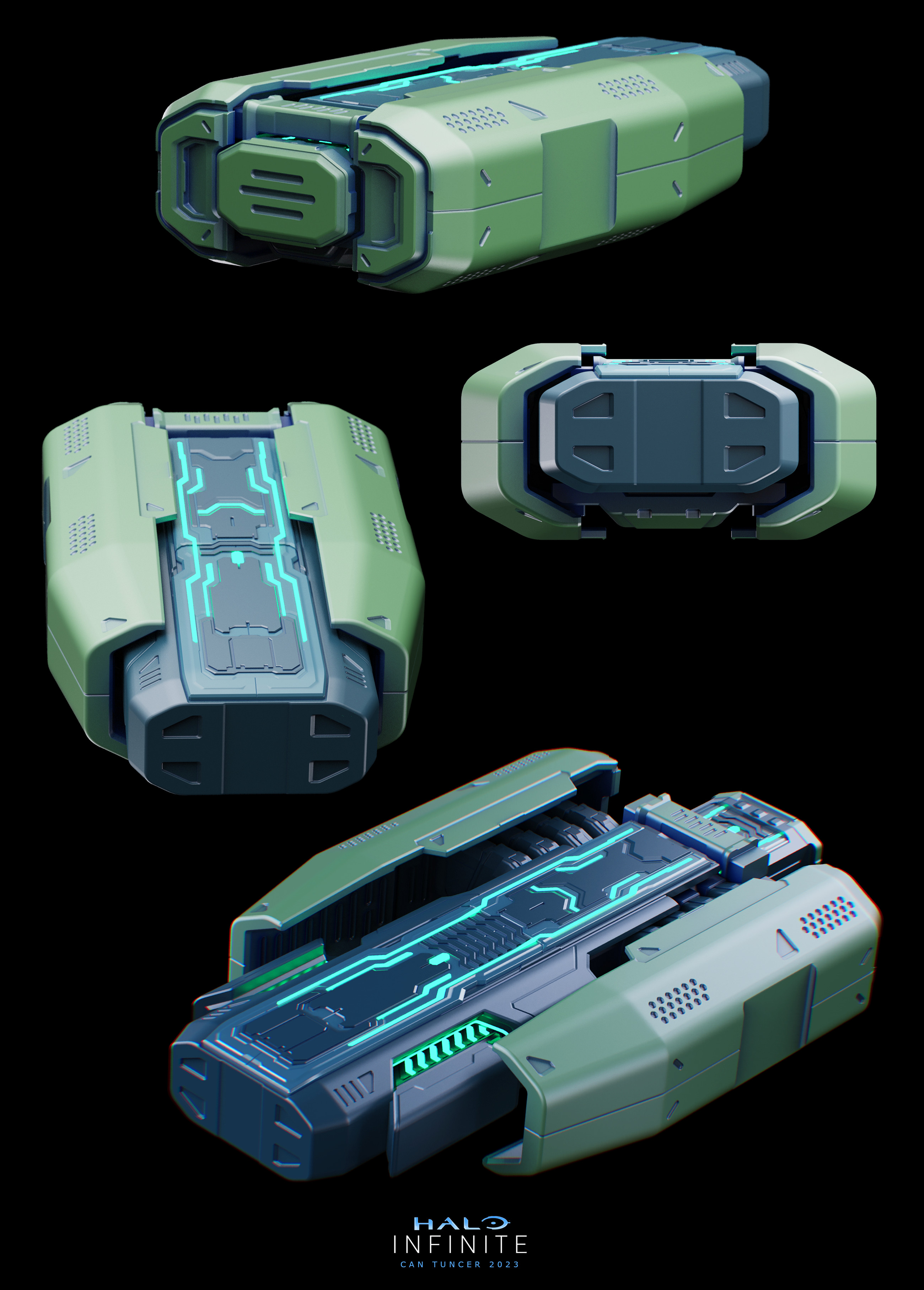 | Source caption | Showcasing the Quantum Translocator Model from Halo Infinite. This was a super fun asset to work on. The model is based on the concept by Ben Mauro. The Decals created by our amazing UI team at 343i really pushed it to the next level. |
