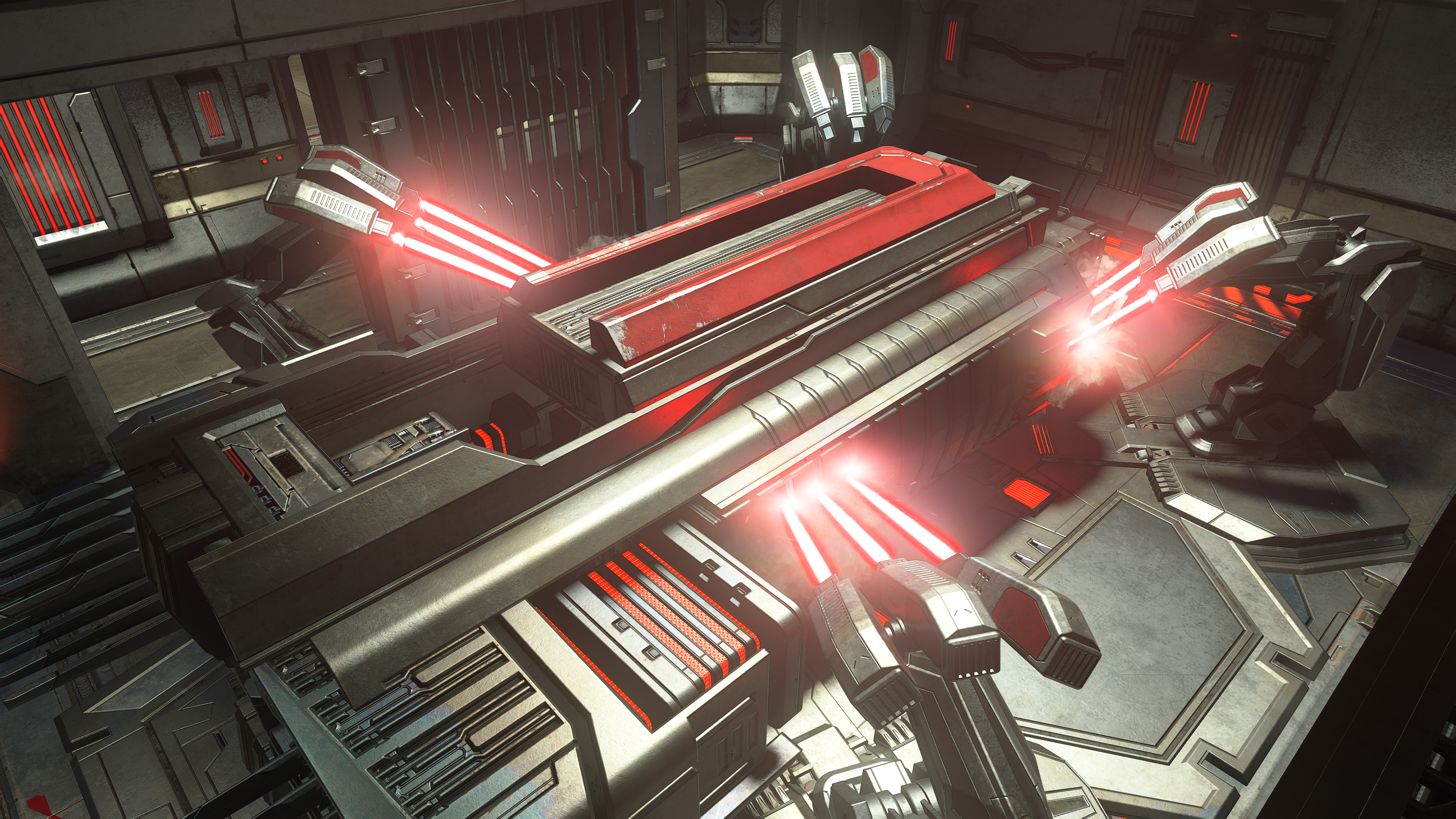 | Summary | A Banished flame-bore undergoing repairs at Ransom Keep. From Halo Infinite campaign level Ransom Keep. |