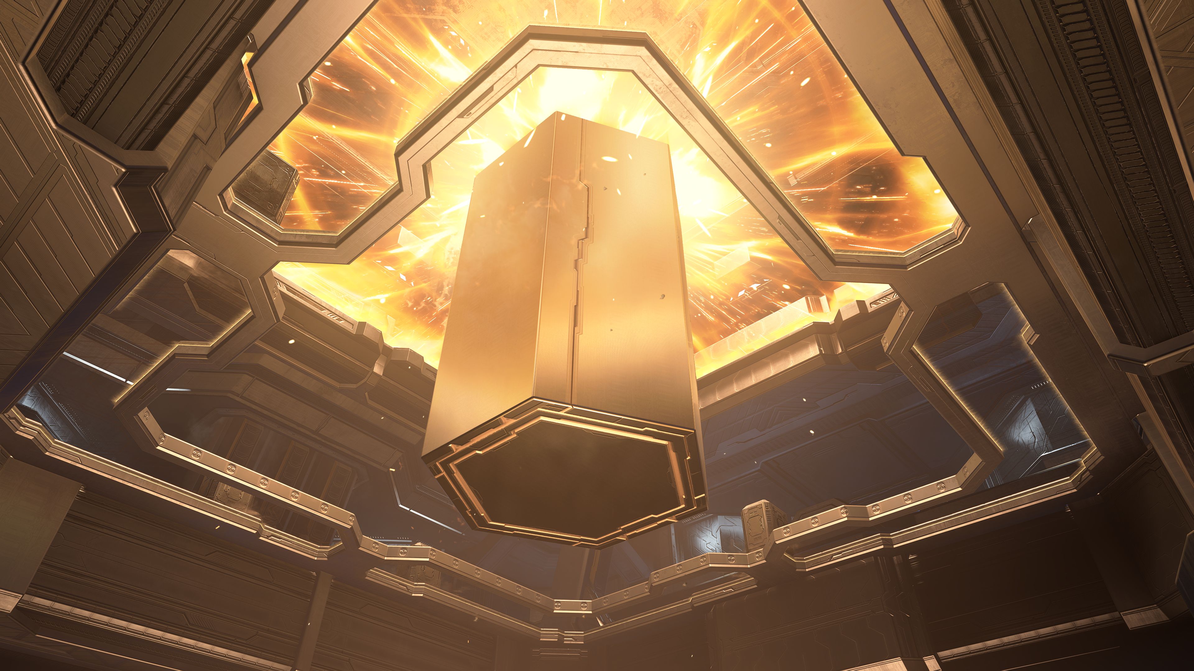 | Summary | A Forerunner hexagonal column being made in the Command Spire. From Halo Infinite campaign level The Command Spire. |