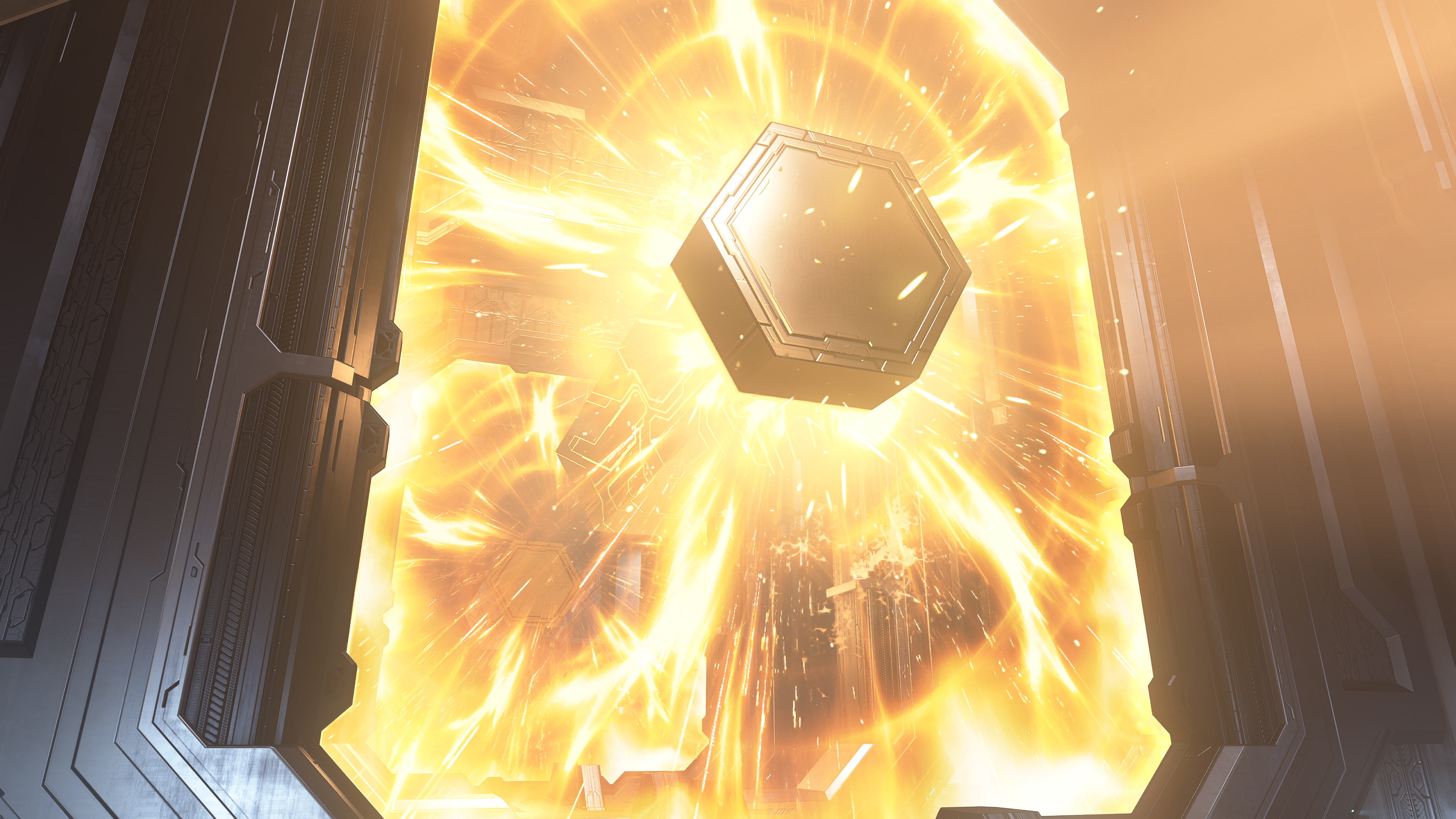 | Summary | A Forerunner hexagonal column being made in the Command Spire. From Halo Infinite campaign level The Command Spire. |