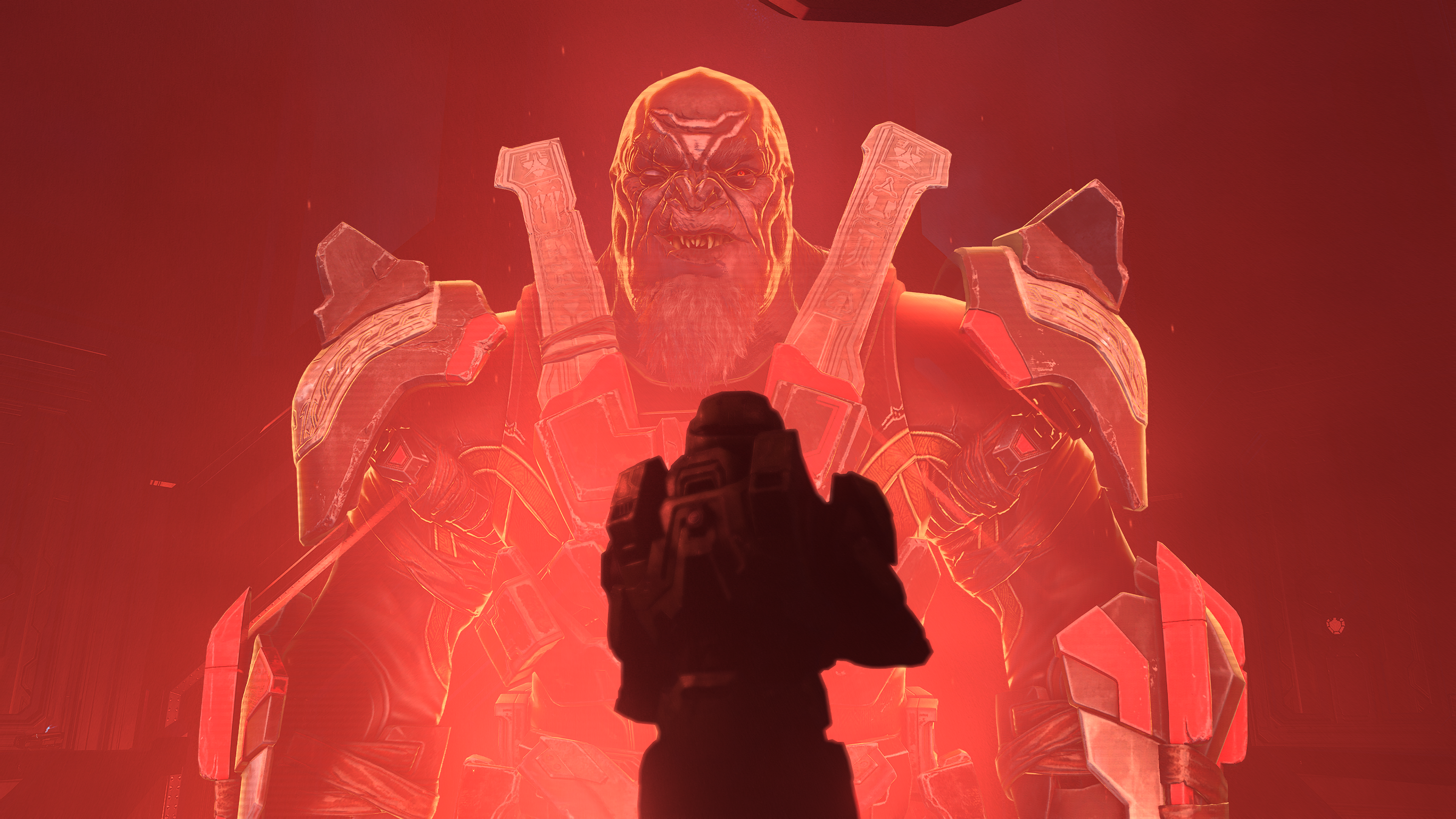 | Summary | John-117 watching a hologram of Escharum in the Repository. From Halo Infinite campaign level Repository. |