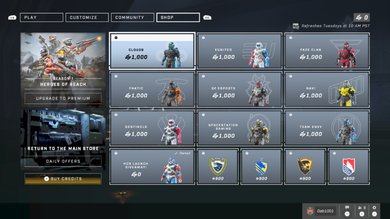 | Summary | Screenshot of the HCS Shop in Halo Infinite. |