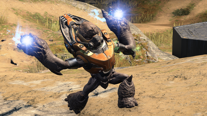 | Summary | An Unggoy Conscript holding two primed Anskum-pattern plasma grenades on a Forge custom map Fragmentation in Halo Infinite. |
