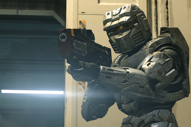 | Summary | Spartan-IV wearing the Wilhelm helmet on the map Recharge in Halo Infinite while holding an MLRS-2 Hydra. Armor/Weapon showcase. |