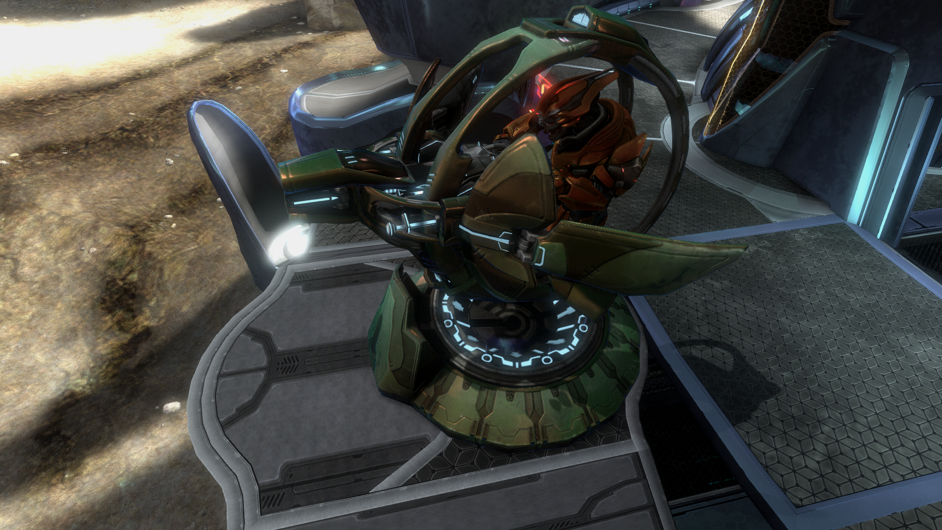 | Summary | An Elite Officer in a fuel rod cannon variant of the Preksheda-pattern Shade on the bottom area of the Spire. From Halo: Reach campaign level Tip of the Spear. |