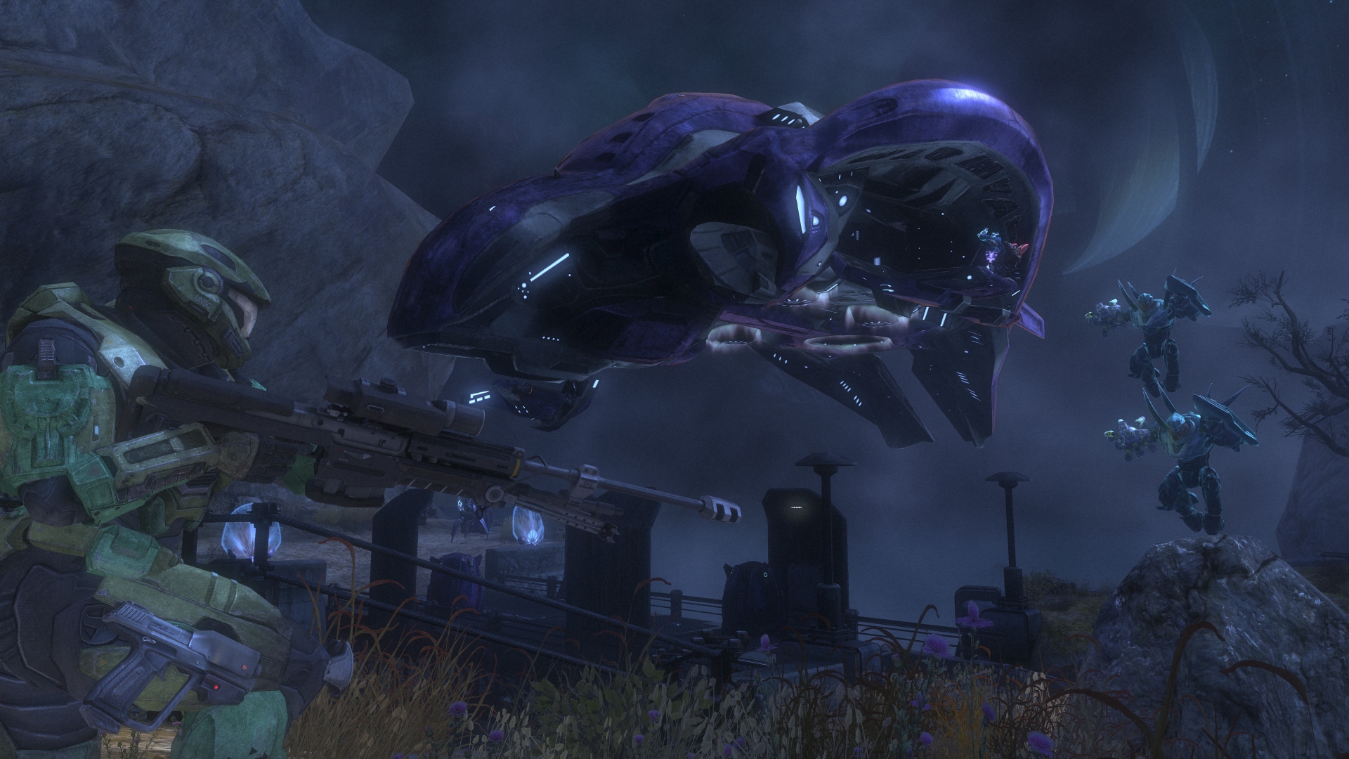 | Summary | Promotional image for Halo: Reach featuring a customized SPARTAN-B312 and a Ru'swum-pattern Phantom deploying a pair of Mgalekgolo at the Ütközet hydroelectric power plant. Screenshot of the campaign level Nightfall from the Halo: Reach press kit. |