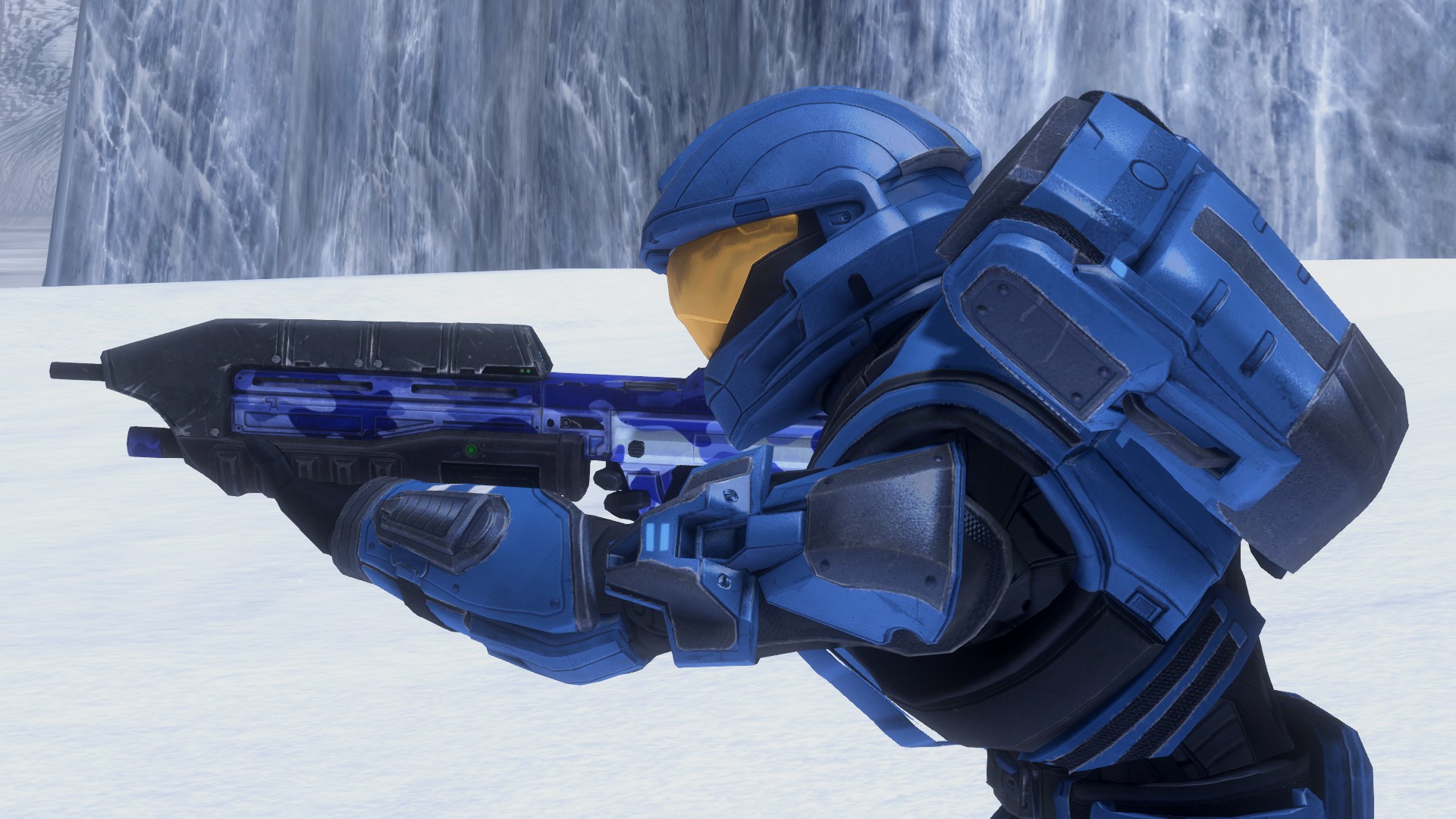 | Summary | In the Halo 3 multiplayer map Avalanche, a Spartan-II, clad in the ODST armor/TAC variant, is wielding an MA5C assault rifle, which is employing the Sapphire Raven skin introduced in Series 6: Raven from Halo: The Master Chief Collection. |