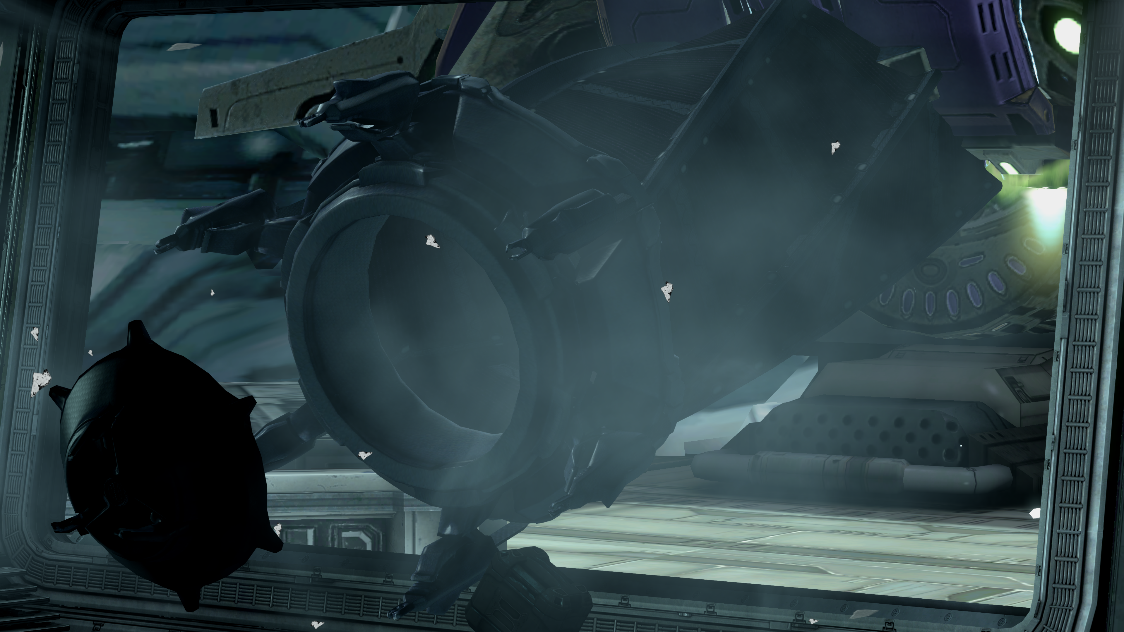 | Summary | A Ru'swum-pattern Phantom's external boarding chute breaching the UNSC Forward Unto Dawn's observation deck. Screenshot taken from Halo 4 campaign level Dawn. |