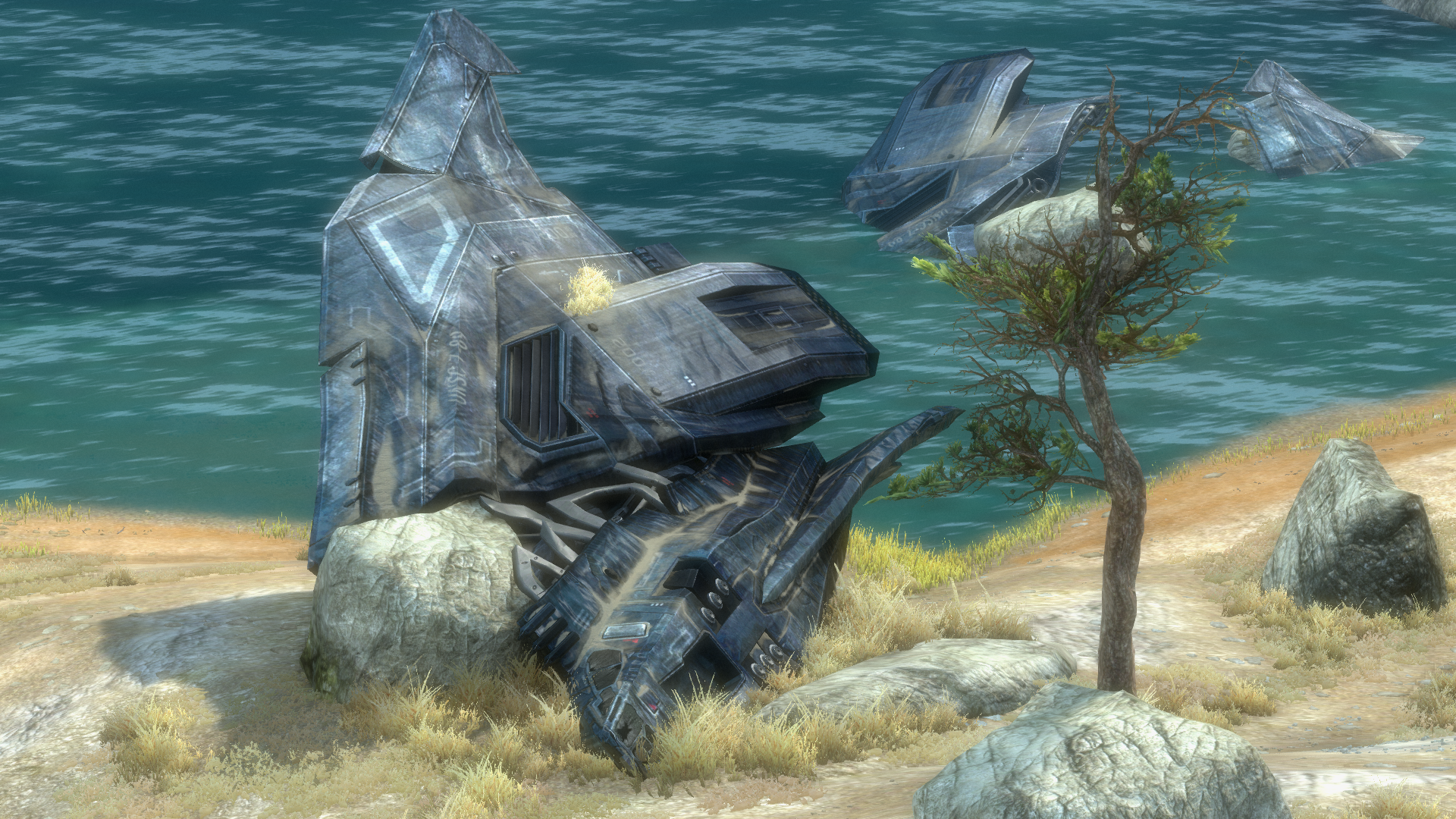 | Summary | The crashed Longsword 91-002 on the Halo: Reach multiplayer map Tempest. |