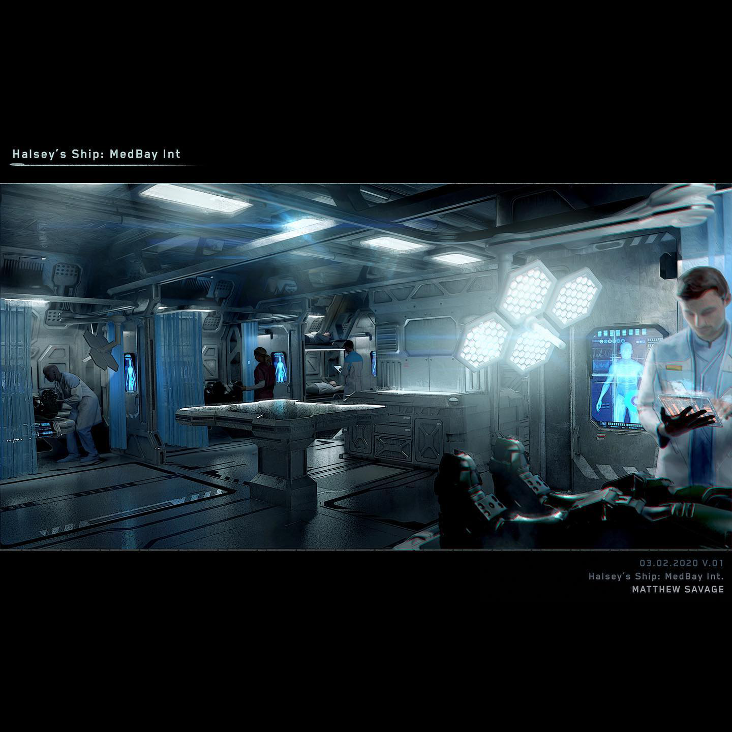 | Summary | Concept art of Halsey's medbay aboard Endymion II. |