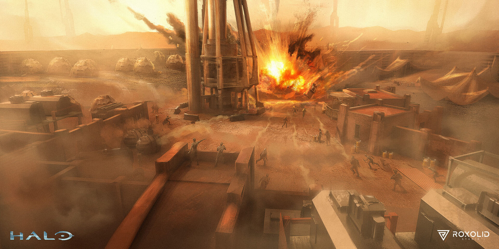 | current | 18:06, May 6, 2023 | 1,920 × 960 (529 KB) | BaconShelf (talk | contribs) | {{file info |summary = Concept art for an explosion at the tether base. |film = Halo: The Television Series |type = concept |source = https://www.artstation.com/artwork/XgPrPD |filename = roxolid-studio-ext-madrigal-outpost-ambush-01-nf-30-01-2020-v1.jpg?1683107966 |caption = We had the chance to work in the epic show: HALO created for Paramount+. The Task was to Create the visual look of the sets and scenes honoring the original material. We'll be posting a few of our favorite concepts. Shou... |