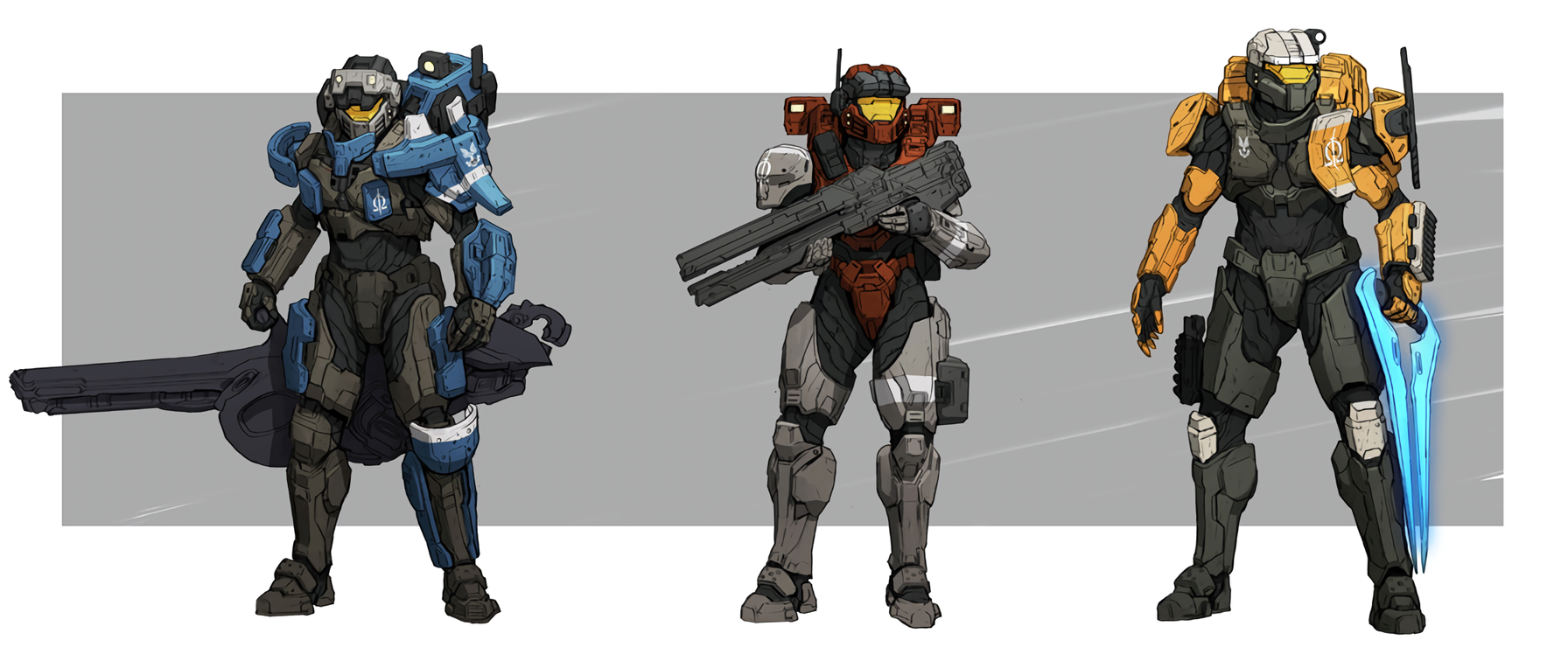 | Summary | Halo Wars 2 concept art for Team Omega members Robert-025, August-099, and Leon-011, respectively. |