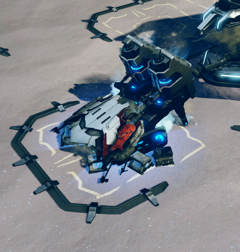 | Summary | A screenshot of a Banished outpost building with an Augmented Harvester attached in Halo Wars 2. |