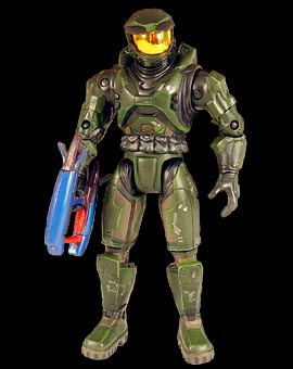 This file is an image of an action figure from the Halo series of video games developed by Bungie Studios, 343 Industries, or Ensemble Studios and published by Microsoft. It falls under the screenshot category for a copyrighted computer game or video game, and the copyright for it is most likely held by the company that developed the game. It is believed that the use of a limited number of web-resolution screenshots: