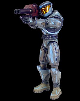 This file is an image of an action figure from the Halo series of video games developed by Bungie Studios, 343 Industries, or Ensemble Studios and published by Microsoft. It falls under the screenshot category for a copyrighted computer game or video game, and the copyright for it is most likely held by the company that developed the game. It is believed that the use of a limited number of web-resolution screenshots: