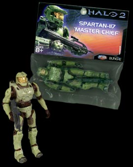 This file is an image of an action figure from the Halo series of video games developed by Bungie Studios, 343 Industries, or Ensemble Studios and published by Microsoft. It falls under the screenshot category for a copyrighted computer game or video game, and the copyright for it is most likely held by the company that developed the game. It is believed that the use of a limited number of web-resolution screenshots: