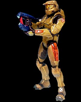 This file is an image of an action figure from the Halo series of video games developed by Bungie Studios, 343 Industries, or Ensemble Studios and published by Microsoft. It falls under the screenshot category for a copyrighted computer game or video game, and the copyright for it is most likely held by the company that developed the game. It is believed that the use of a limited number of web-resolution screenshots: