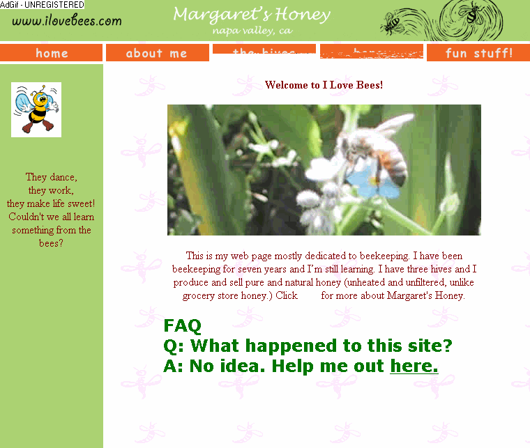 Various shots of the I Love Bees (website) index, hastily put together with cheap animation software.