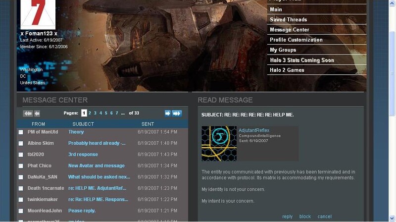 | Summary | Screenshot of a DM between x Foman 123 x and AdjutantReflex on 6/19/2007 |