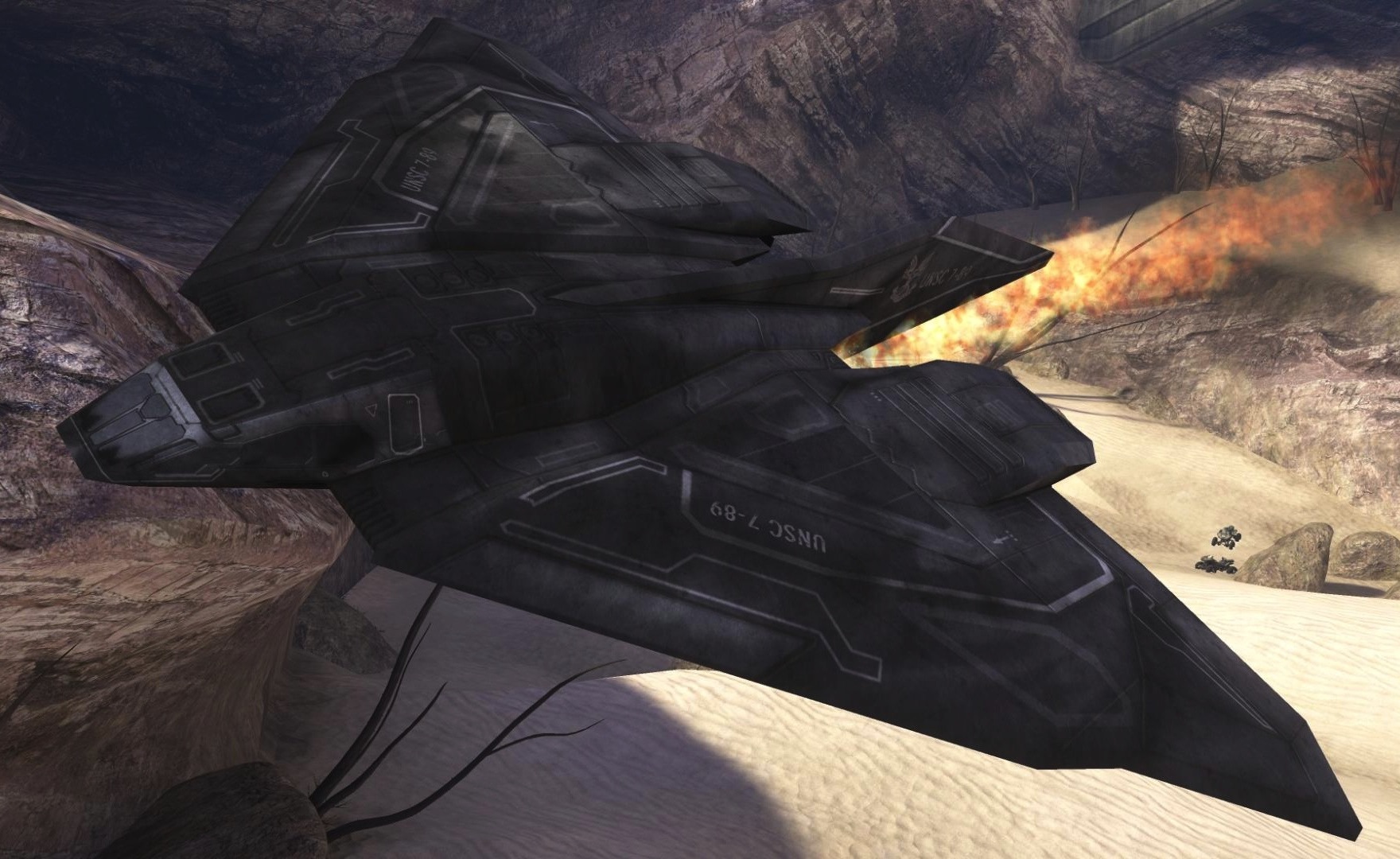 | Summary | A screenshot of a C712 Longsword crash-landing on Installation 00 on the level The Ark. |