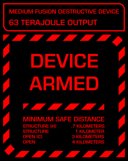 | Summary | Graphics for the armed screen on the Fury tactical nuclear weapon in Deliver Hope. |