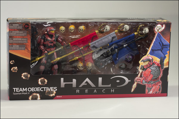 The packaging of the McFarlane figure set of a Spartan-III and various multiplayer objective replicas from Series 6. Source